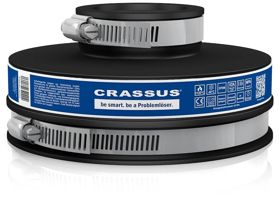 - außenliegender Adapter zur Verbindung zweier Abwasserrohre von unterschiedlichen Außendurchmessern. Werkstoffe oder Oberflächenstruktur gem. DIN EN 295-4